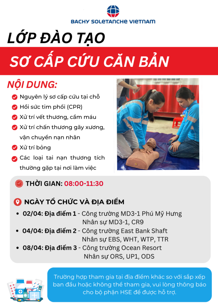 At Bachy Soletanche Vietnam, we believe the strongest “foundation” of every project is the safety of our people. Recently, our HSE Department successfully completed the Basic First Aid Training series, bringing practical, life-saving knowledge directly to the field.